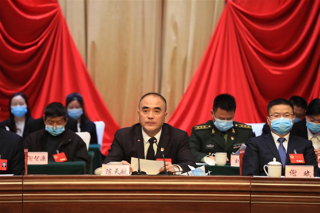 陳天航代表區(qū)委向會議的圓滿成功表示熱烈祝賀,向新當(dāng)選的區(qū)政協(xié)主席、副主席、秘書長和各位常委表示熱烈祝賀,向政協(xié)旌陽區(qū)第五屆委員會及全體委員致以衷心的感謝和崇高的敬意。